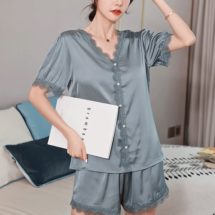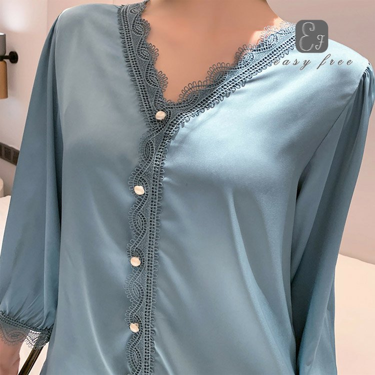 여성 실크 잠옷 프리미엄 실크, 섬세한 질감, 아름다운 광택감~접촉 냉감, 벗기 싫은 편안함! 레이스 디자인, 섹시하고 우아한 분위기