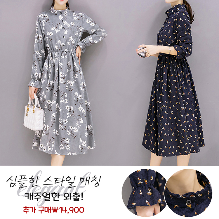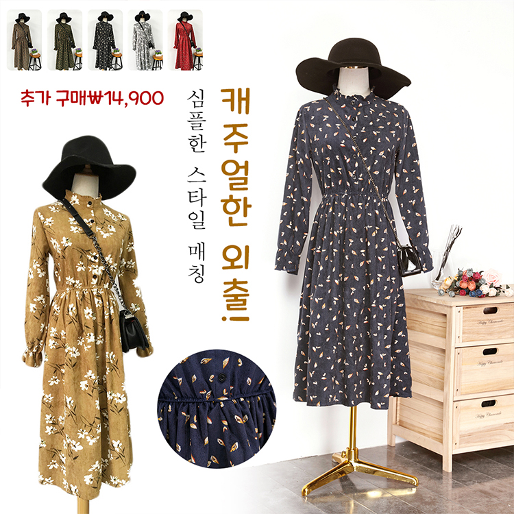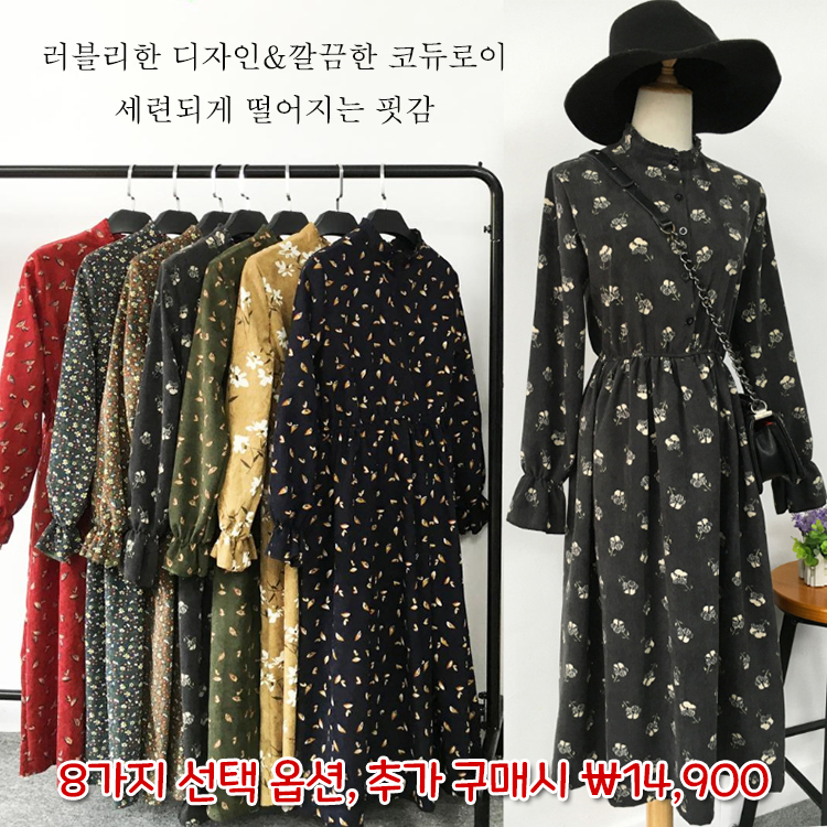 핏감이 예술인 코듀로이 원피스, 오텀 플라워 시리즈로 신상 업뎃! 슬림하게 잡아주는 허리라인, 러블리한 매력이 넘치는 디테일 디자인, 지금 할인받고 추가 구매시 ₩14,900