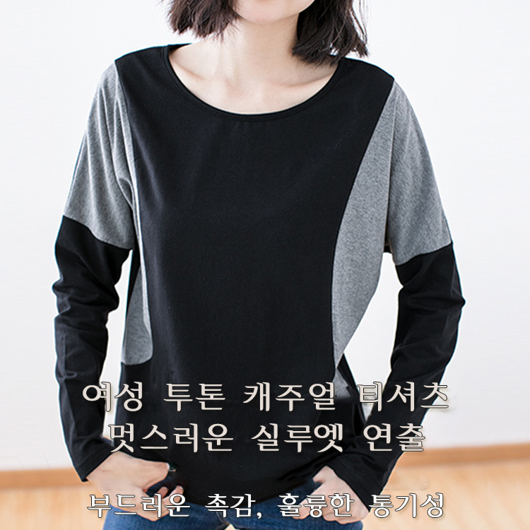 여성 투톤 캐주얼 티셔츠